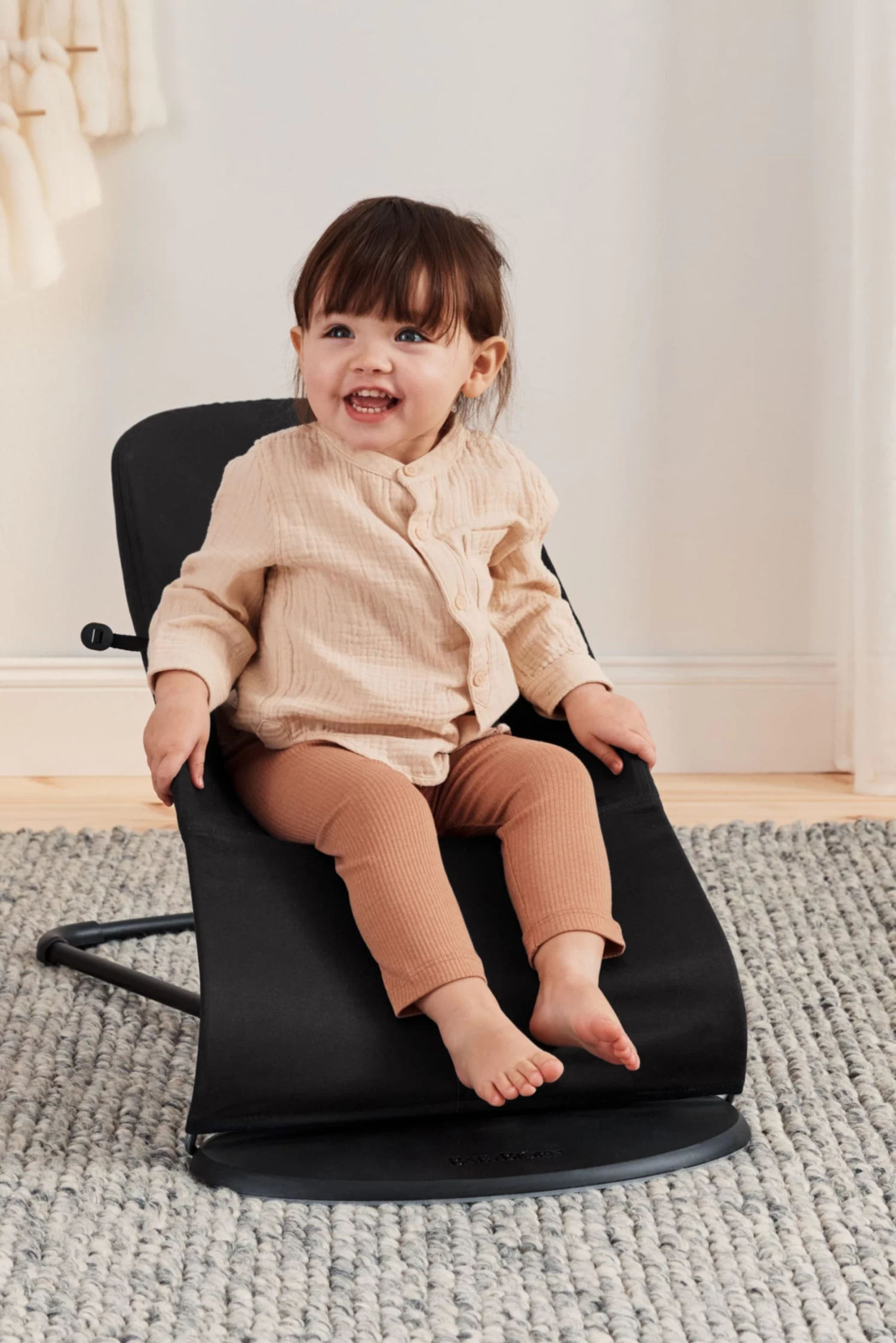 Our lightweight bouncers are easy to move around and take with you – they’re a cosy place for your baby to play close by you, while you have your hands free for a while. The natural rocking of a bouncer usually has a comforting effect on a very young baby. As your baby grows and learns how to control the rocking, the bouncer becomes even more fun, and also stimulates your baby’s balance and motor skills.