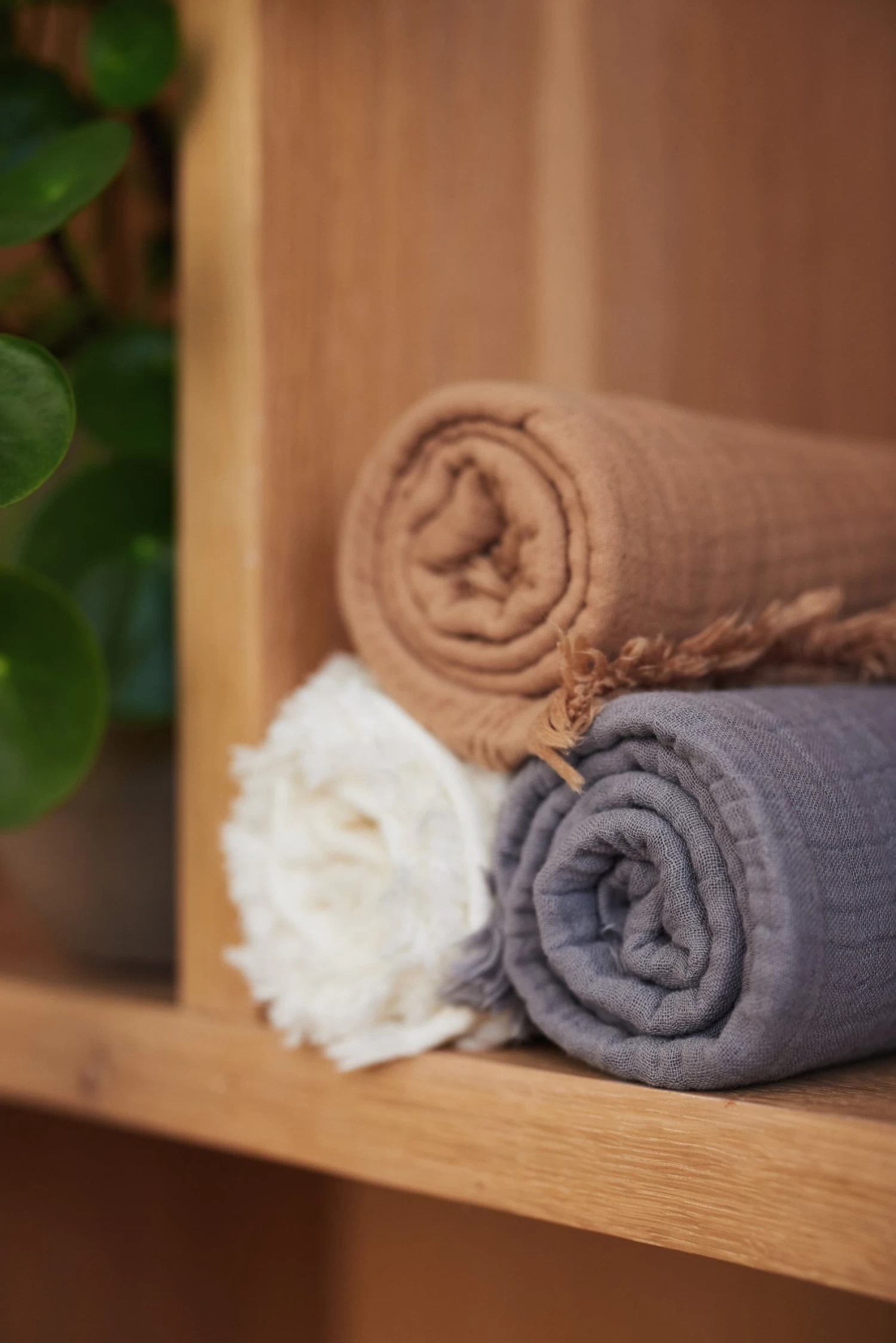 A blanket gives a sense of security and ensures that your little one can sleep safely and comfortably. In addition to being a blanket, it can also be used perfectly as a hydrophilic multi-cloth to take to the beach or pool. The muslin fabric also absorbs moisture with ease and is super soft for sensitive skins. You can also easily take the multifunctional blanket with you in your diaper bag as an extra blanket, to change your baby on when you are on the road, or as a towel. Shop this multifunctional item in three trendy colors: ivory, gray and biscuit.