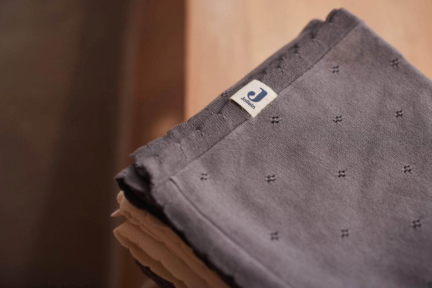 The Pointelle theme is soft, cute, warm and made of organic cotton. So nice! The Pointelle theme has a sweet openwork in the items which gives a romantic look. In this theme you can shop blankets in the colors ivory, biscuit and storm grey. The Pointelle theme matches very well with item from the Blue Tit x Jollein forest animals theme.