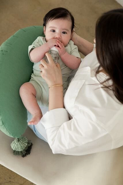This stylish accent cushion is actually a smartly designed nursing pillow in disguise. Baby bonding time gets taken to new heights with this cradling pillow that curves around the body to support baby or mom’s arms during nursing sessions. You won’t mind leaving this chic nursing pillow out on the couch when company stops by.