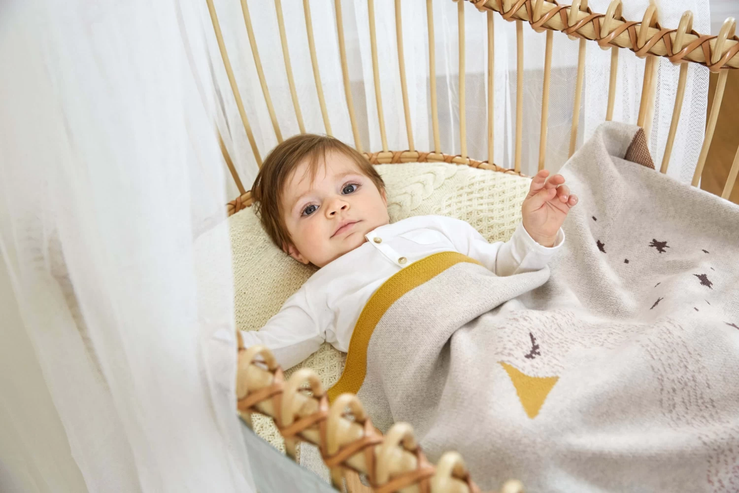 Warm and cozy in a LÄSSIG knitted baby blanket.