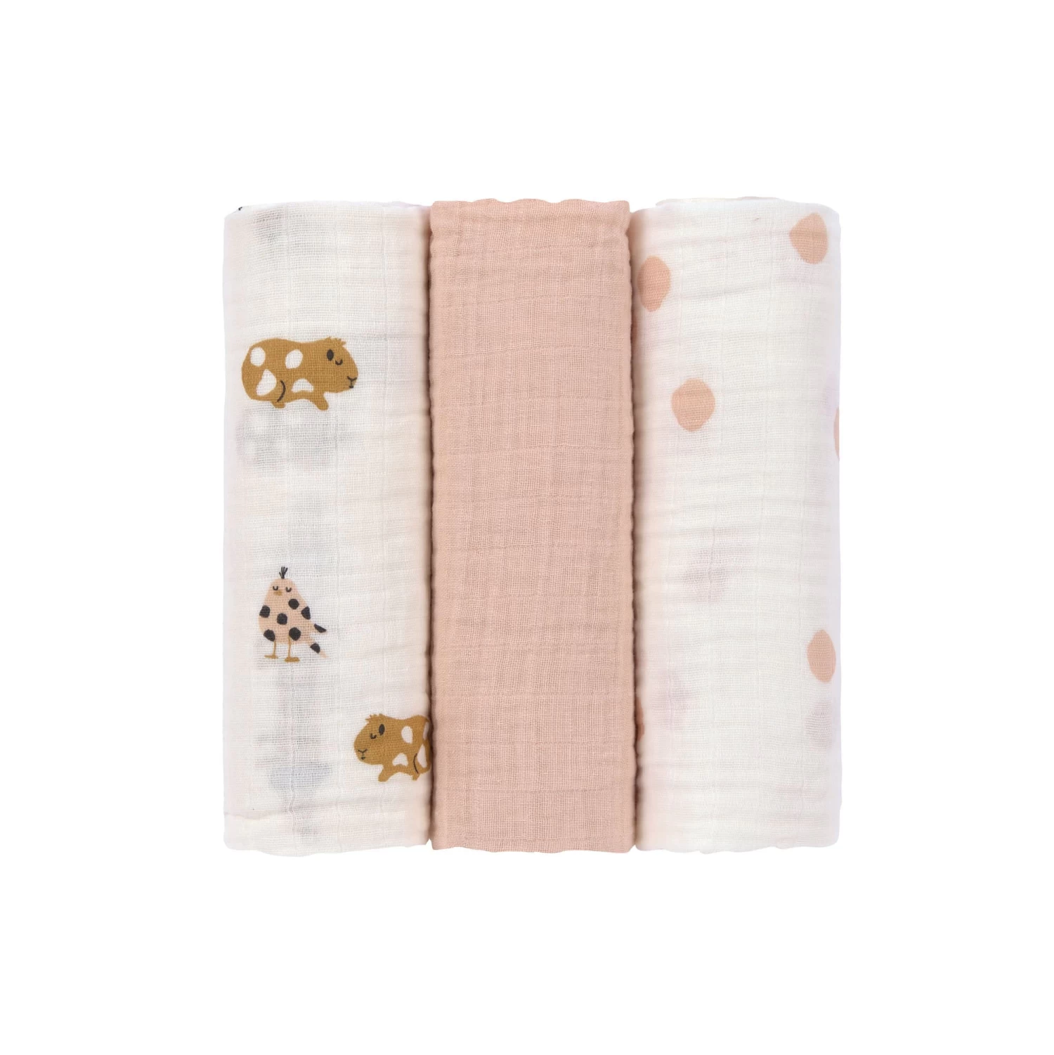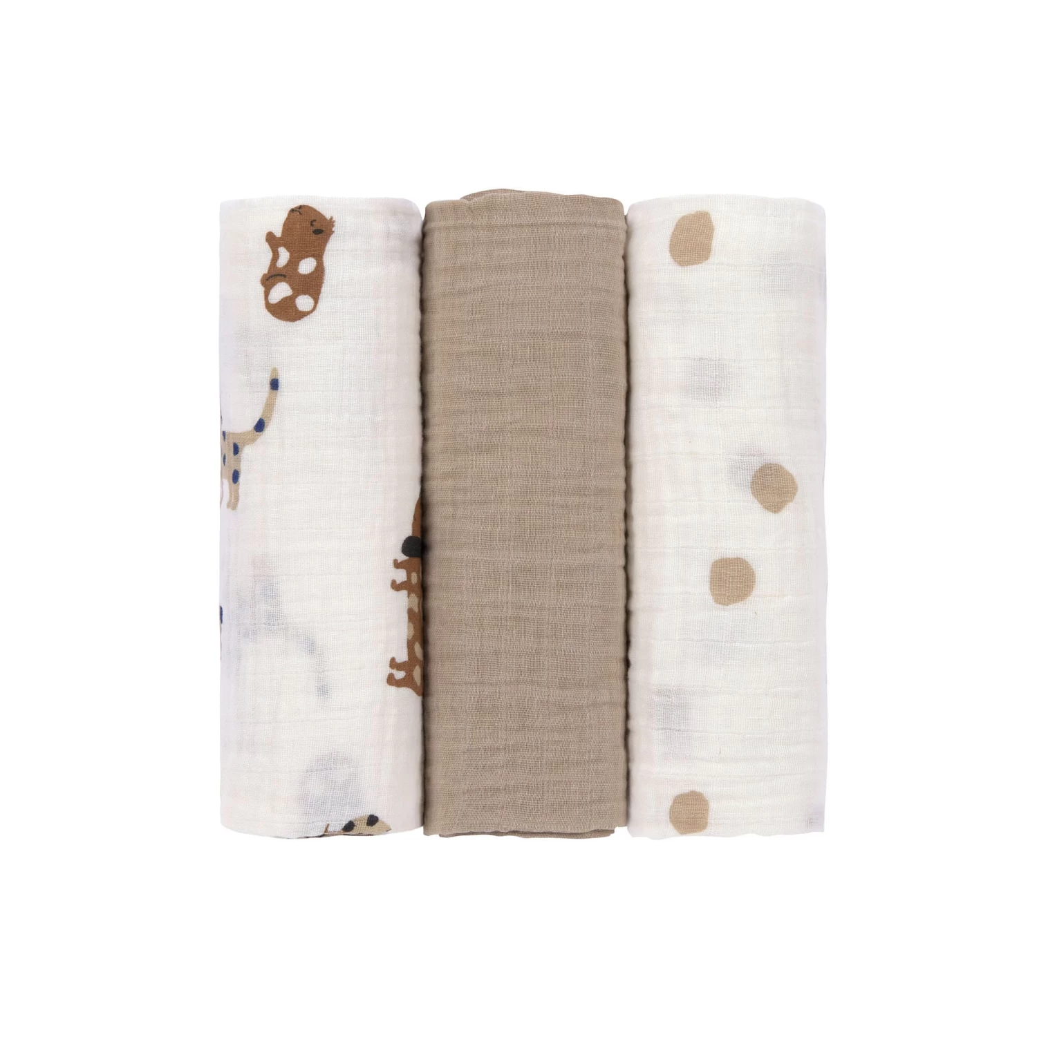 The multipurpose 85 x 85 cm cloth by LÄSSIG is made of pre-washed, easy to clean and breathable 100% cotton and can be used as a burp or swaddle cloth. The cloths feature friendly, cheerful prints and are available as a triple pack in a variety of colors and designs. Special features: The cloths are guaranteed to remain nice and soft after multiple washings. The multipurpose cloth fulfills Ökotex Standard 100, Class 1 requirements and can be washed at 60 °C.