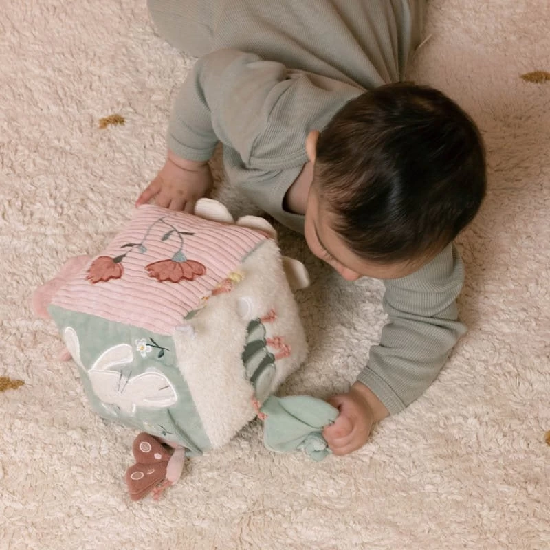 On an adventure in nature with Abby the bird and her friends. This super soft activity cube in cheerful shades is sure to arouse your little one’s curiosity. Each side features a different activity with different textures and shapes that help develop the senses and, of course, provide endless entertainment. The cube can be gripped and turned and has a flowery mirror for self-discovery.