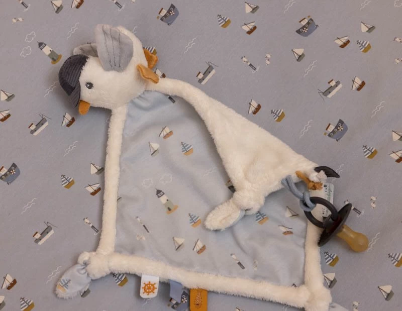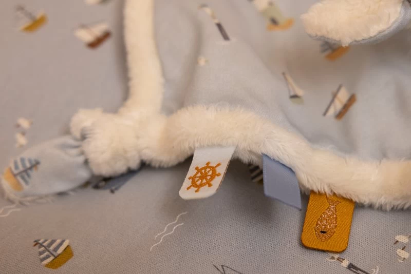Day and night at your fingertips. Children like to take this comforting cuddle cloth from the playpen to their bed. It is printed with our Sailors Bay print and offers many fun details to discover. Think of easy-to-grip buttons, fun labels that stimulate the senses and a cotton loop to easily attach a dummy or teether. The super soft seagull gives this cuddle cloth a playful look.