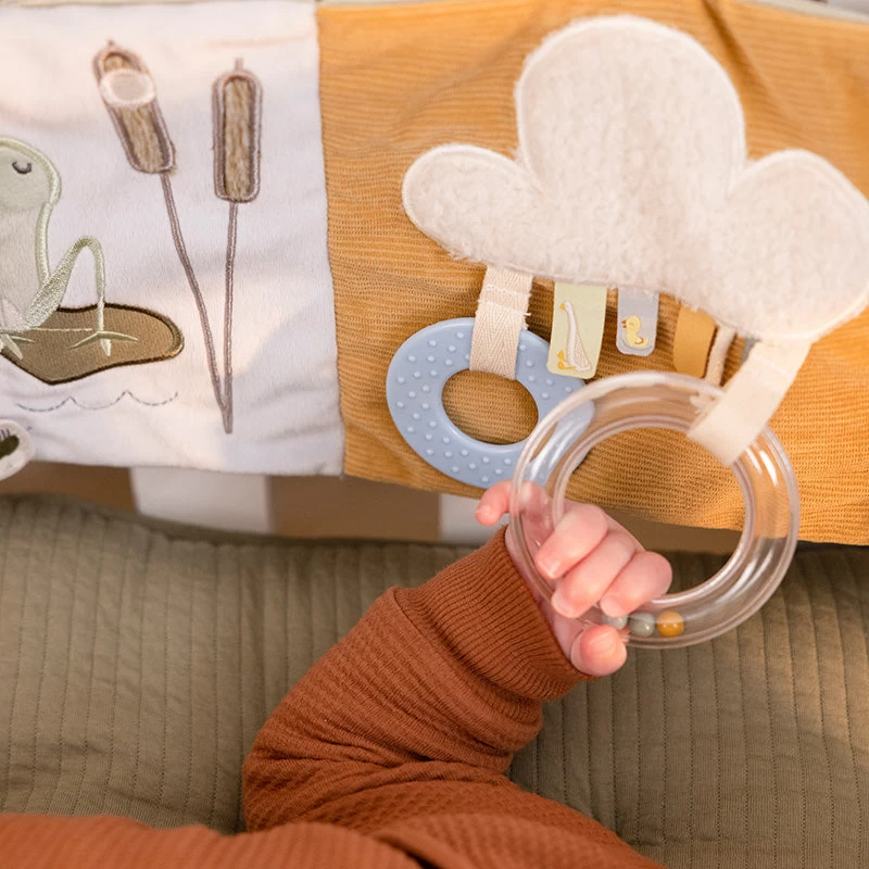 This lovely centre of activities will surely stimulate your baby’s senses and hand-eye coordination. Simply attach the activity book to the playpen at the appropriate position using the cotton strings. Fun to focus on at an early age, but even more fun to play with during tummy time.